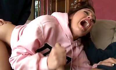 Bitchy college gal Brenna Sparks is humped by young step daddy right on the table
