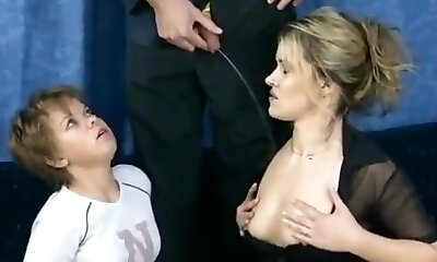 euro dominance féminine platinum-blonde trempant 5 brunes
