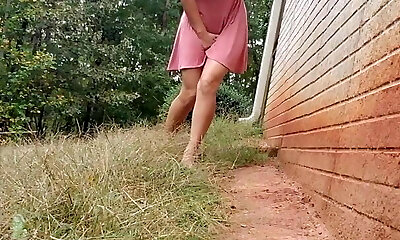 Svelte inexperienced chick in jeans shorts pissing right in the woods