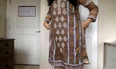 德西女孩剥她的Salwar沙丽克米兹裸露和嘲弄我们