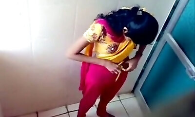 Some unexperienced Indian dark-haired gals peeing in the toilet on voyeur cam
